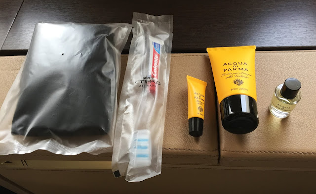 平常在商務艙,最感興趣的都是過夜包,結果這次在頭等艙上太忙,過夜包到了快下飛機才有空拆。